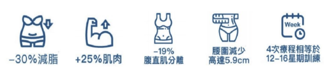 A:立即療程後,因肌肉充血可感受暫時性的肌肉線條或肌力增加,建議多攝取高蛋白多喝水並維持正常規律的生活,完整療程後3個月後腰圍可以減少5.9cm,少部分人做完療程後1-3天會有肌肉輕微痠痛感。