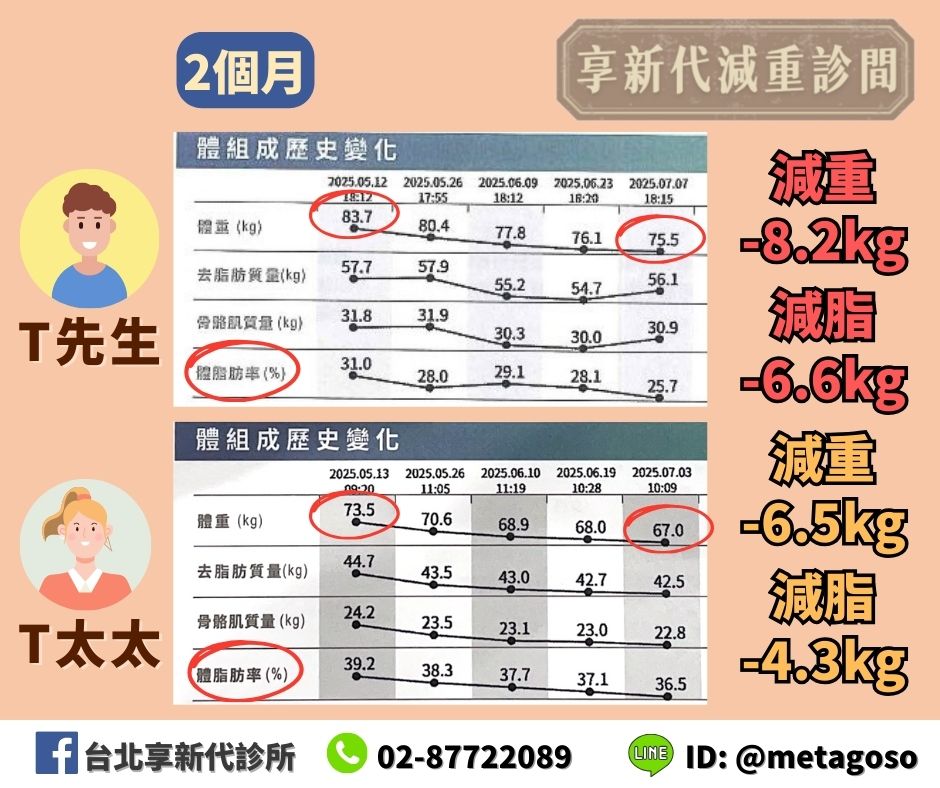 這對夫妻從原本各自減重,到一起來享新代看診,互相鼓勵、彼此陪伴,短短兩個月就一起瘦出驚人成果,不只體重下來,生活也變輕盈了