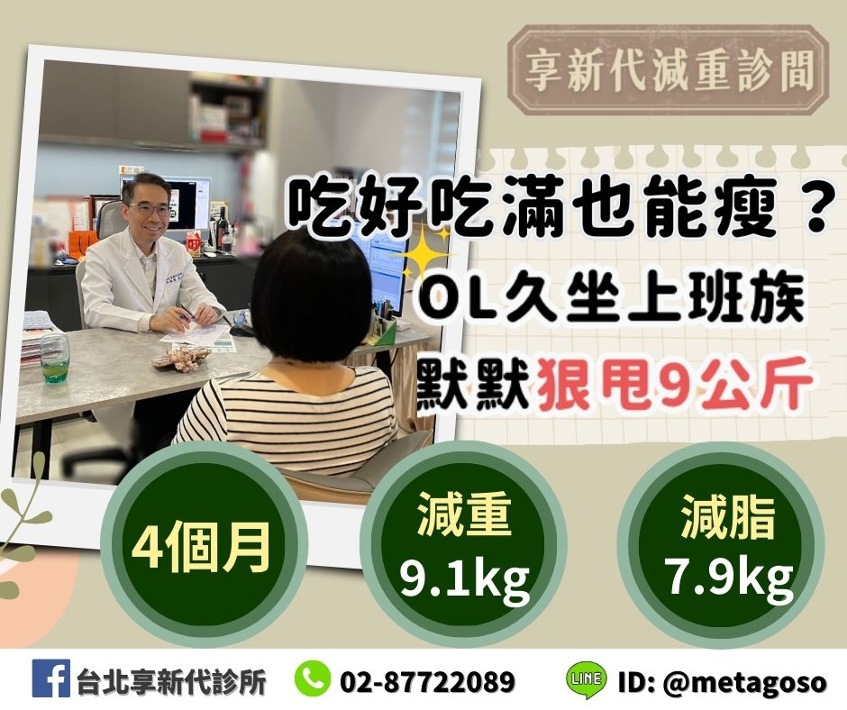 【享新代減重診間系列-吃好吃滿也能瘦,OL久坐上班族默默狠甩9公斤!】